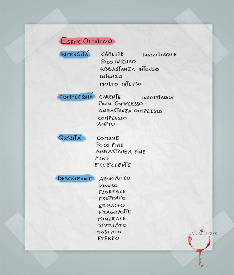 Descrizione del vino: Le famiglie olfattive e il ventaglio di sentori percepiti