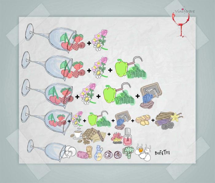 scansioneremo i profumi del vino e come le singole sensazioni si manifesteranno